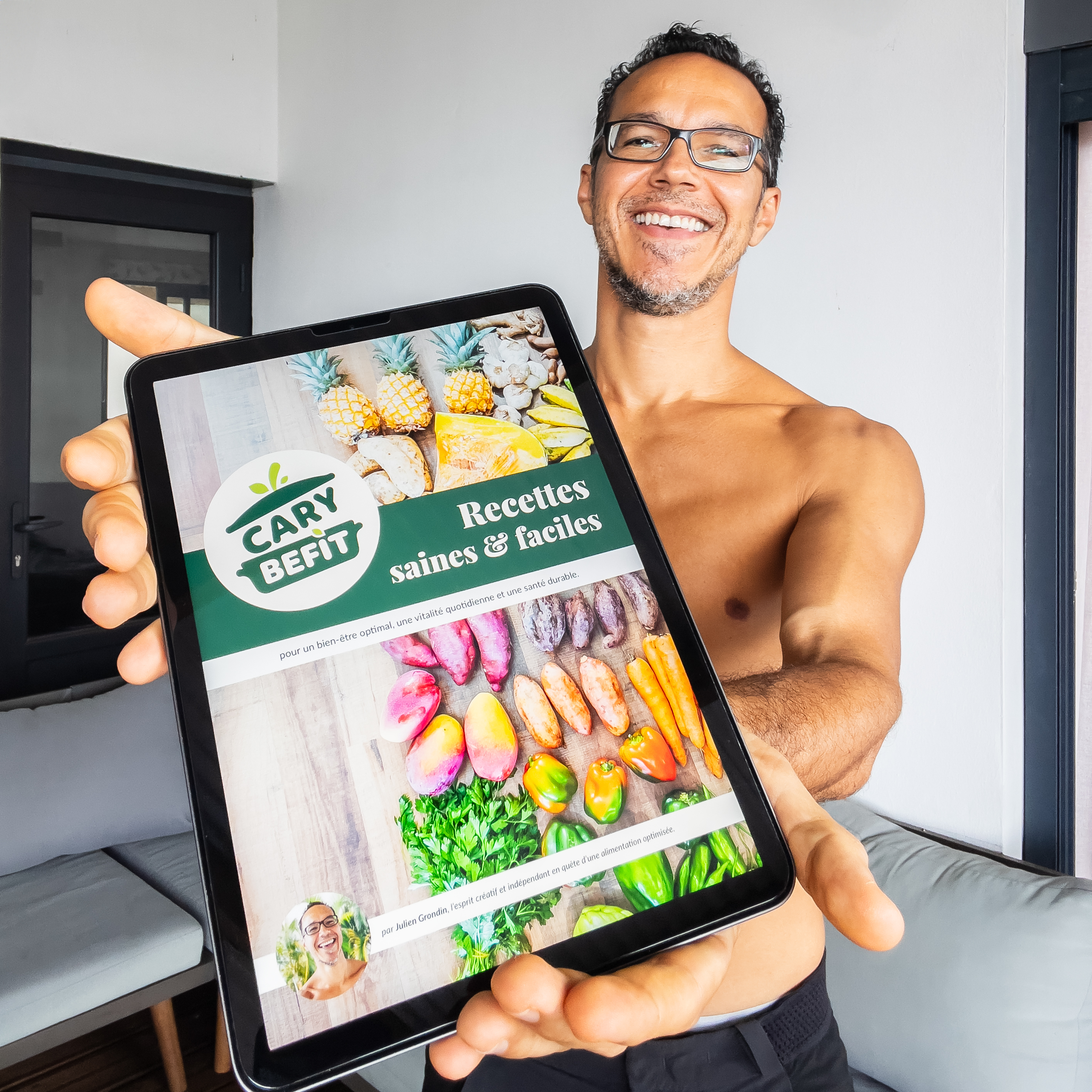 Envie de manger sain sans sacrifier le goût ? Le livre de recettes Carybefit (200 pages) est fait pour toi. Avec 53 recettes savoureuses et simples à réaliser, tu pourras allier plaisir culinaire et perte de poids. En plus, profite de 45 articles complets sur la nutrition et des conseils pour perdre du gras. Ce guide est ton allié parfait pour une alimentation saine au quotidien et atteindre tes objectifs.