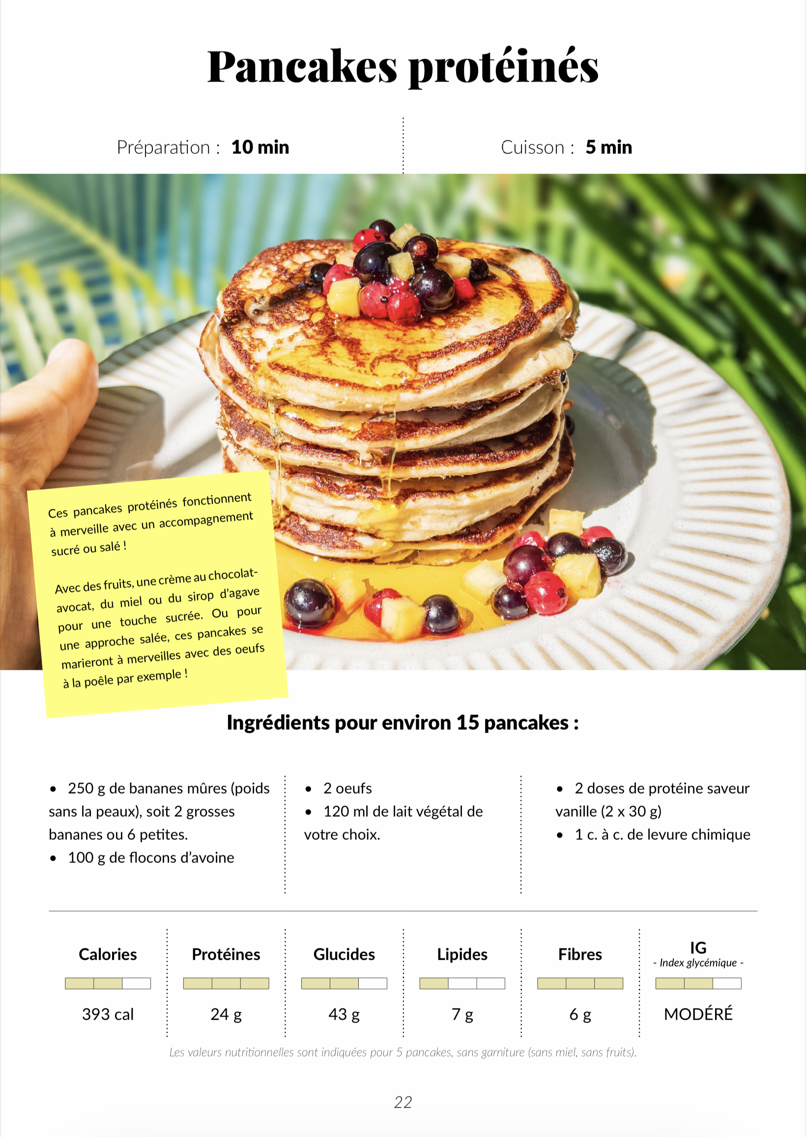 Chaque recette est une invitation à cuisiner sans stress, avec des explications claires et concises. Les étapes sont décrites de manière simple pour vous permettre de réussir vos plats à coup sûr. Qu'il s'agisse de pancakes protéinés pour démarrer votre journée ou d'un plat principal revigorant, chaque recette a été pensée pour que sa préparation soit un plaisir, pas une corvée.