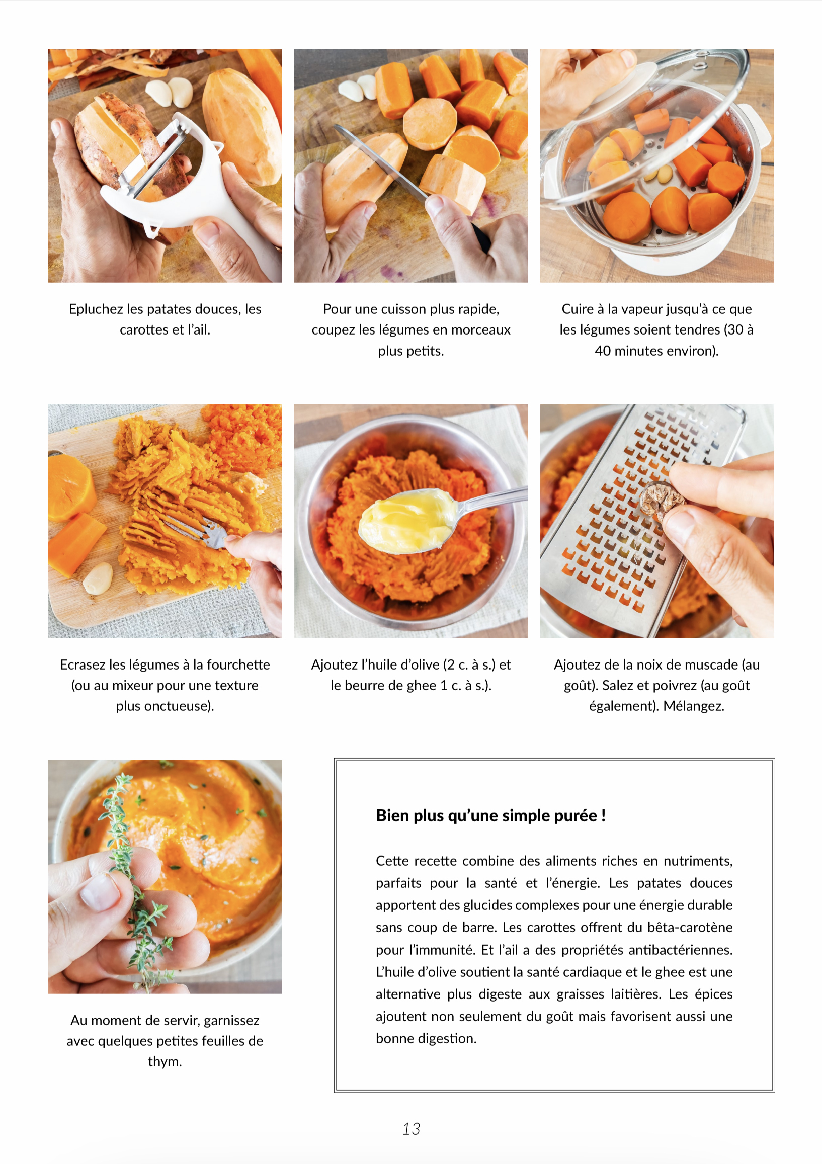 Chaque recette offre des instructions étape par étape, enrichies d'illustrations précises. Ces guides visuels vous mènent avec clarté à travers chaque phase de la préparation, garantissant une exécution sans faille, idéale pour les débutants ou toute personne souhaitant simplifier sa pratique culinaire, sans complications.